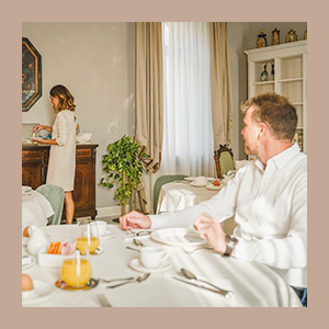 Per questo motivo le colazioni di Villa Dafne sono ricchissime: succhi di frutta, the, infusi, caffetteria, brioches, fette biscottate con marmellate ma anche uova, salumi e formaggi per chi ama fare il pieno di energia.
